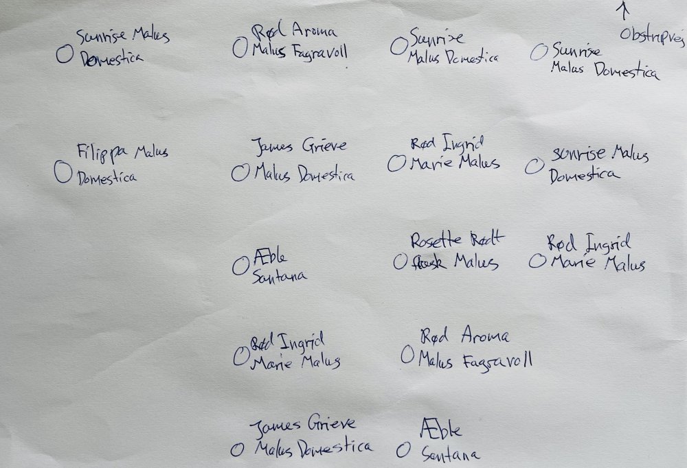 Der er 2. oktober 2023 plantet 15 æbletræer på den nederste del af vores fællesarealer, mod Obstrupvej. Håbet er at disse indenfor en overskuelig årrække kan berige Frøkærparkens beboere med delikate frugter hvert efterår, til fri afbenyttelse.